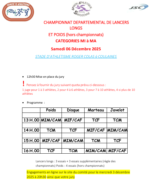 Championnat départementaux lancer long