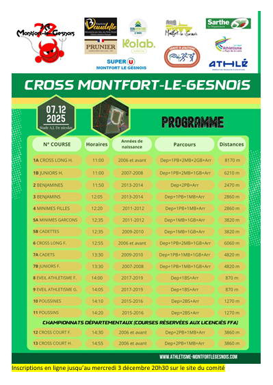 Horaire cross JAMG (07/12/2025)