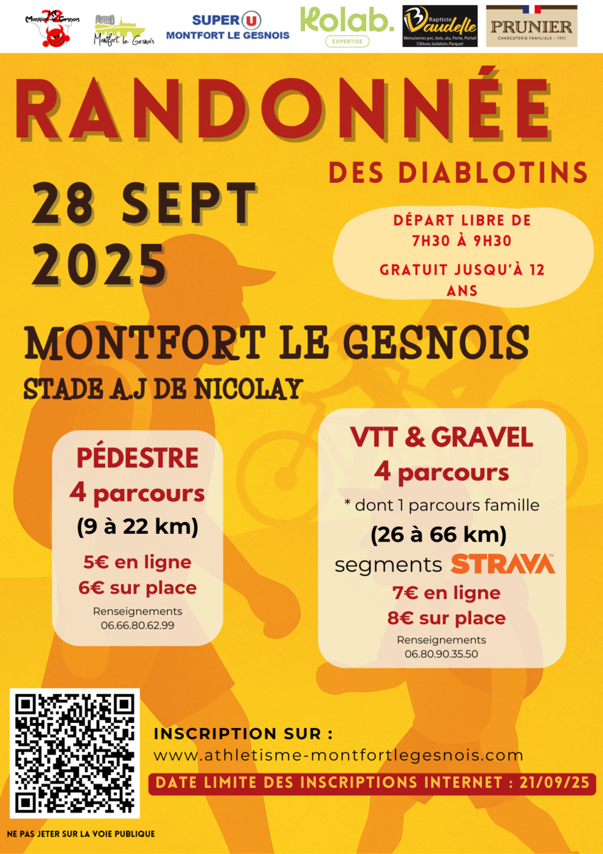 Inscription en ligne possible jusqu'au 26 septembre 2025. Au delà, les inscriptions seront possibles sur place le dimanche 28 septembre 2025.